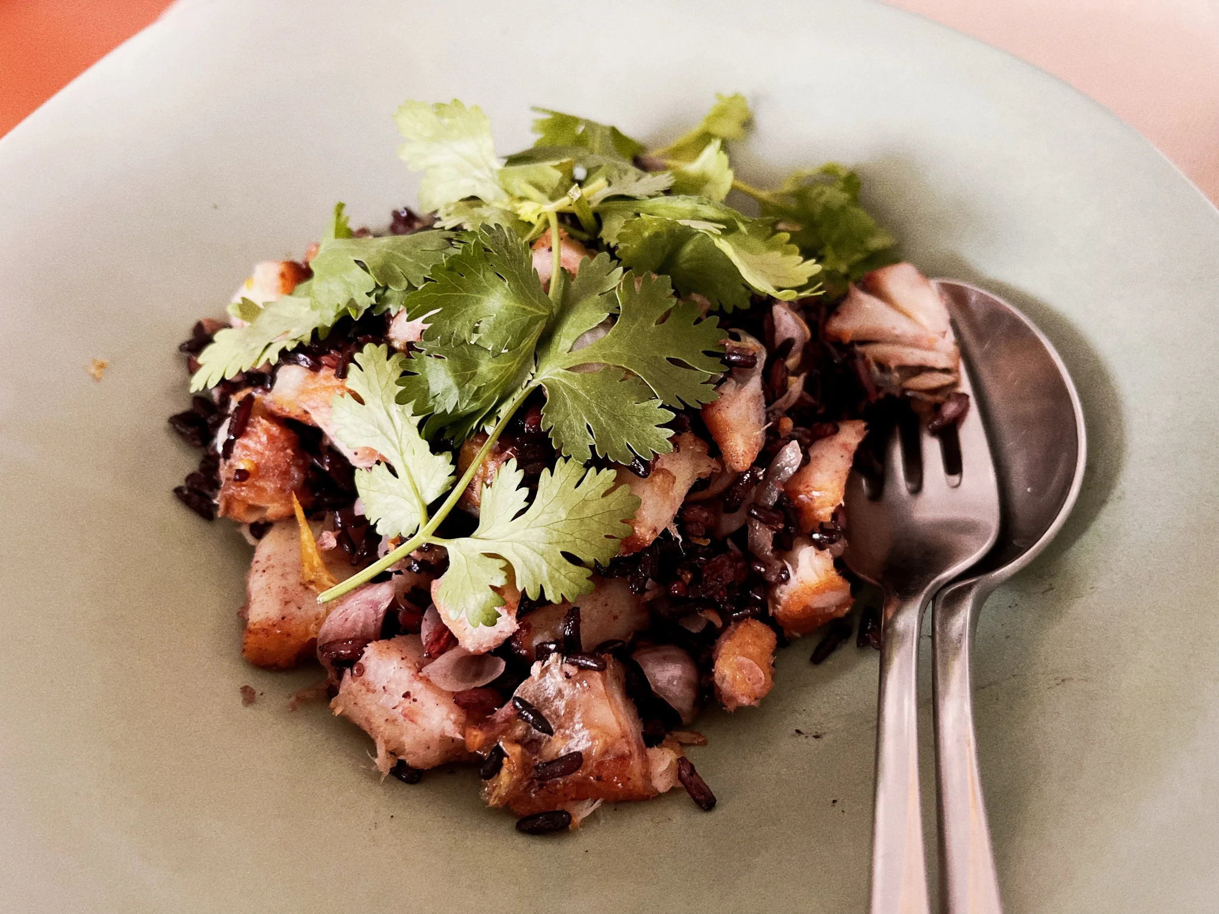 ข้าวดำที่รู้สึกเฮลตี้ แล้วก็ปลา โปรตีนที่ดูจะทำให้รู้สึกผิดหน่อยที่สุด กับการต้องรับประทานเนื้อสัตว์ กับน้ำมัน สิ่งที่ต้องสู้รบกับมัน ว่าจริงๆ เราควรจะทานมันยังไงเท่าไหร่ ไปตลอดชีวิต