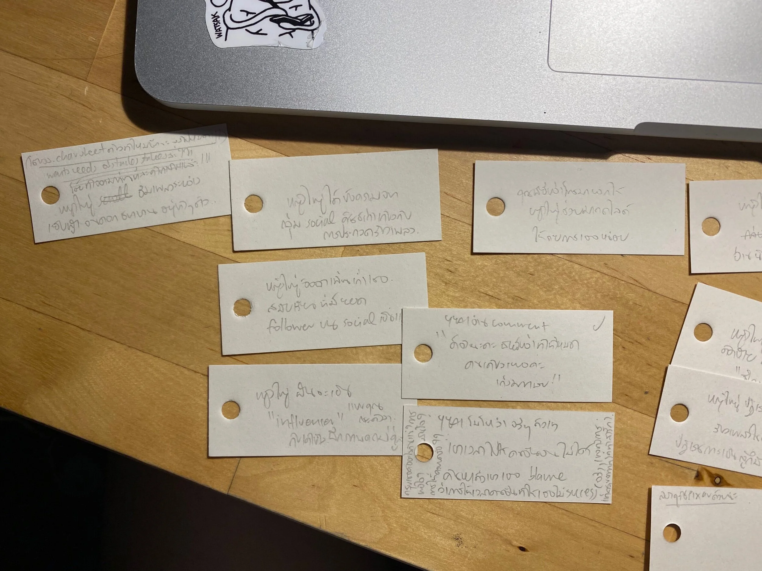 22:01 เขียน cue cards เพิ่ม งงชะมัด เพราะอ่านหลายตำรา เห้อ เหมือนจะยังติดตรง obstacles and stakes ว่ามันทำงานยังไง ตอนนี้อุปสรรคจะเกี่ยวกับเรื่องเวลาจากพี่น้องพี่หญิงใหญ่ ต้องเสียสละ แล้วสุดท้ายเธอจะได้เรียนรู้ว่า เธอไม่จำเป็นต้องเป็นที่โด่งดังในโลกโซเชียล แค่เธอมั่นใจในตัวเอง มีความสุข พอใจในสิ่งที่เธอมี ในไลค์จากพี่น้อง มนไลค์จากตัวเอง (สำคัญที่สุด) นั่นคือตอนแรกเธอเห็นไลค์ของพี่น้องก็ดีใจแล้ว ไม่สิ เธออาจจะไม่เห็นค่าตรงนั้นด้วย ตอนแรกเหมือนดีใจ แต่จริงๆก็ไม่ คือตายใจเพราะติดว่าคนใกล้ตัวไง (ทำให้ได้เรียนรู้ว่าอย่าไปเรียกร้องความรักการยอมรับจากใคร ให้เริ่มจากตัวเอง) จนเมื่อเธอหลุดจากไลค์พวกนี้ต่างหาก ถึงไม่มีใครไลน์เลย เธอก็สุขได้ สุดท้ายไปเปิดแอคเค้าไพรเวทลงร้องเองมีความสุข แล้วชบาก็บานอีกครั้ง ใช่! เย้!!!!! บางคลิปก็น้อง บางคลิปก็เต้น อะไรแบบนี้น่ะ ร้องประกวดแข่งโซเชียล ร้องชบาบาน ตอนแรกเธอคิดว่าชบาบานเพราะเธอร้องแบ้วคนฟังชอบ แต่จริงๆชบาบานเพราะเธอมีความสุขต่างหาก จากการไม่ต้องสนใจว่าใครจะชอบ แค่ทำเพราะรักที่จะทำ แค่เป็าตัวเอง มั่นใจในตัวเอง พอใจในตัวเอง เห็นคุณค่าตัวเอง ร้องเพื่อแข่งกับคุณพี่ยี่หร่า ดูมีหลาบประเด็นไปไหมนะ)