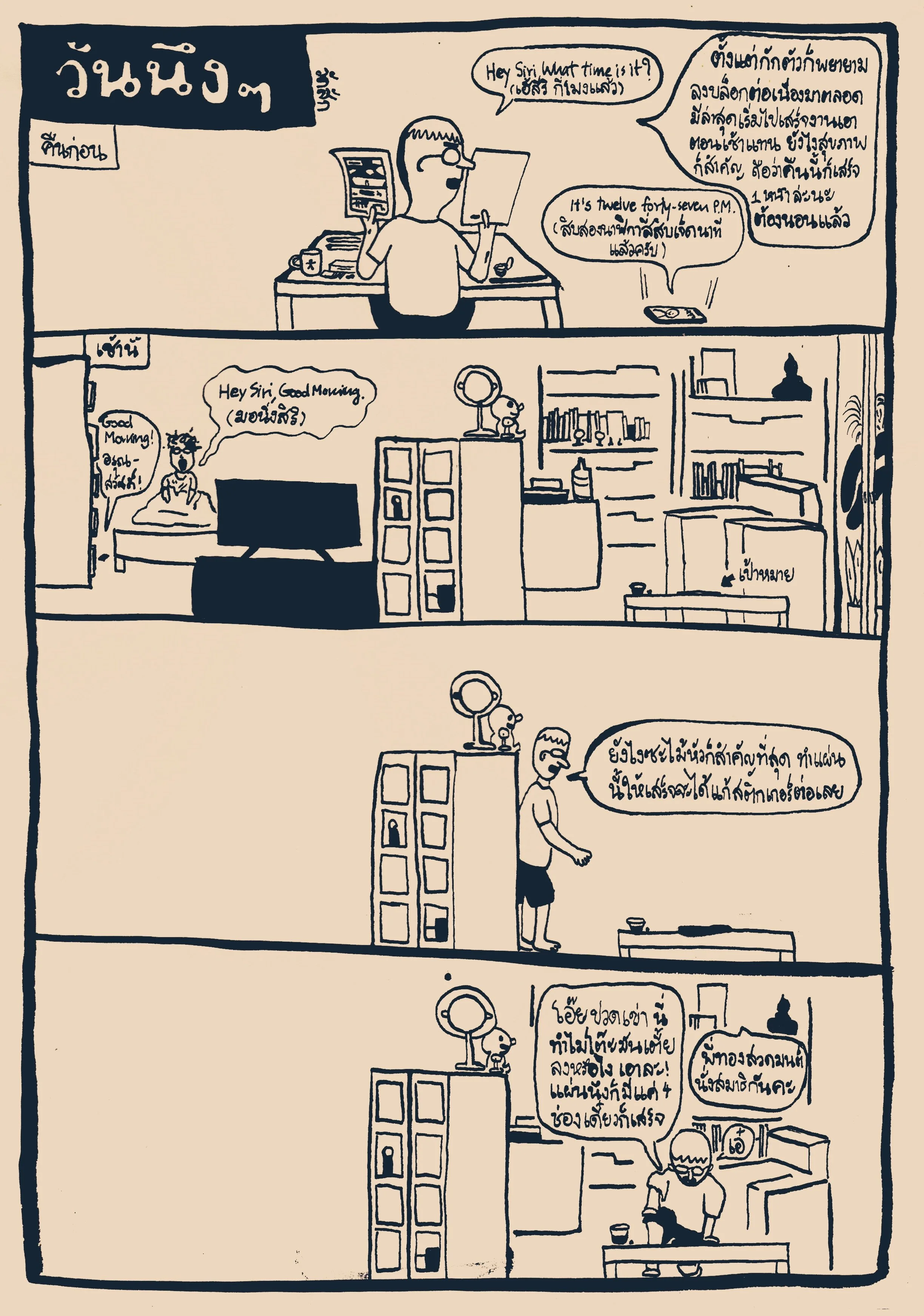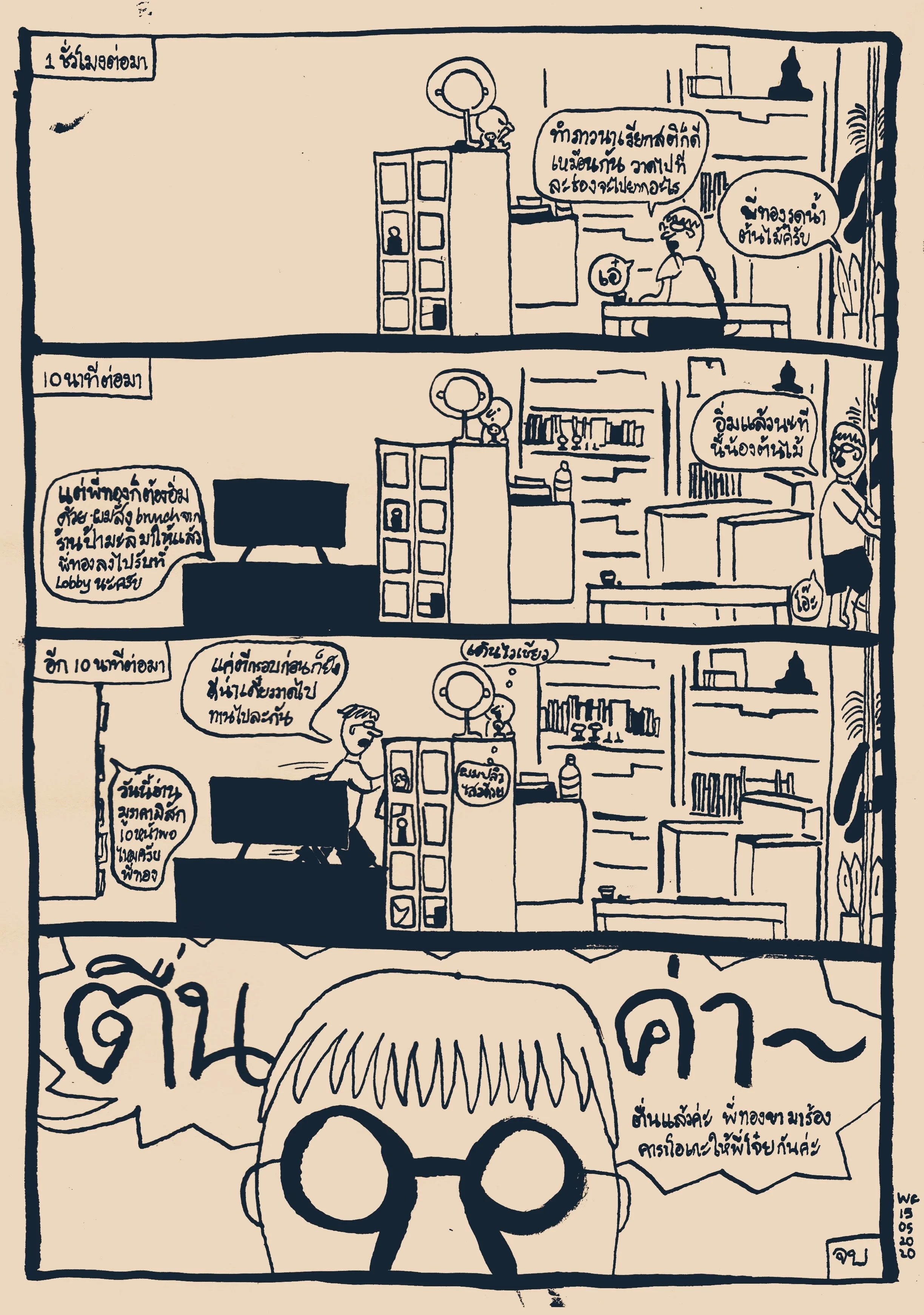 คอมิคส์สมัยแรกๆเลยครับ ตอนนั้นยังเขียนด้วยสีหมึกแล้วก็สแกนเอา ไม่แน่ใจว่าไปเขียนอะไรเพิ่มเติมตอนที่บล็อกอีกไหม ต้องกลับไปเช็คอีกรอบ ตอนเอาบล็อกเข้าไม้หัวอาไคฟ์
