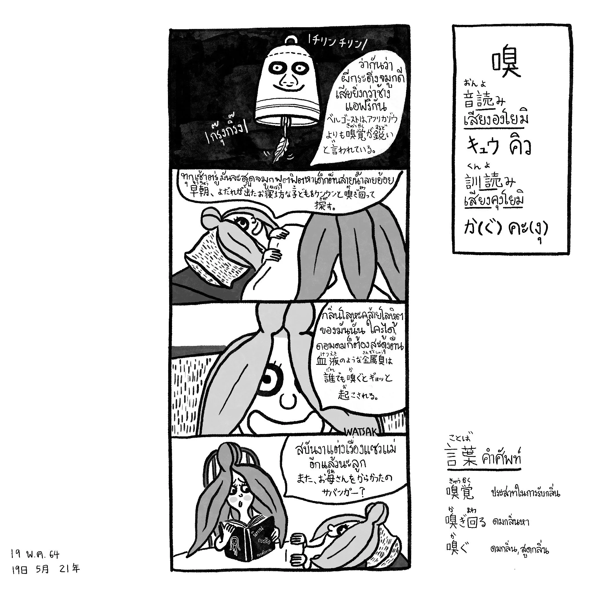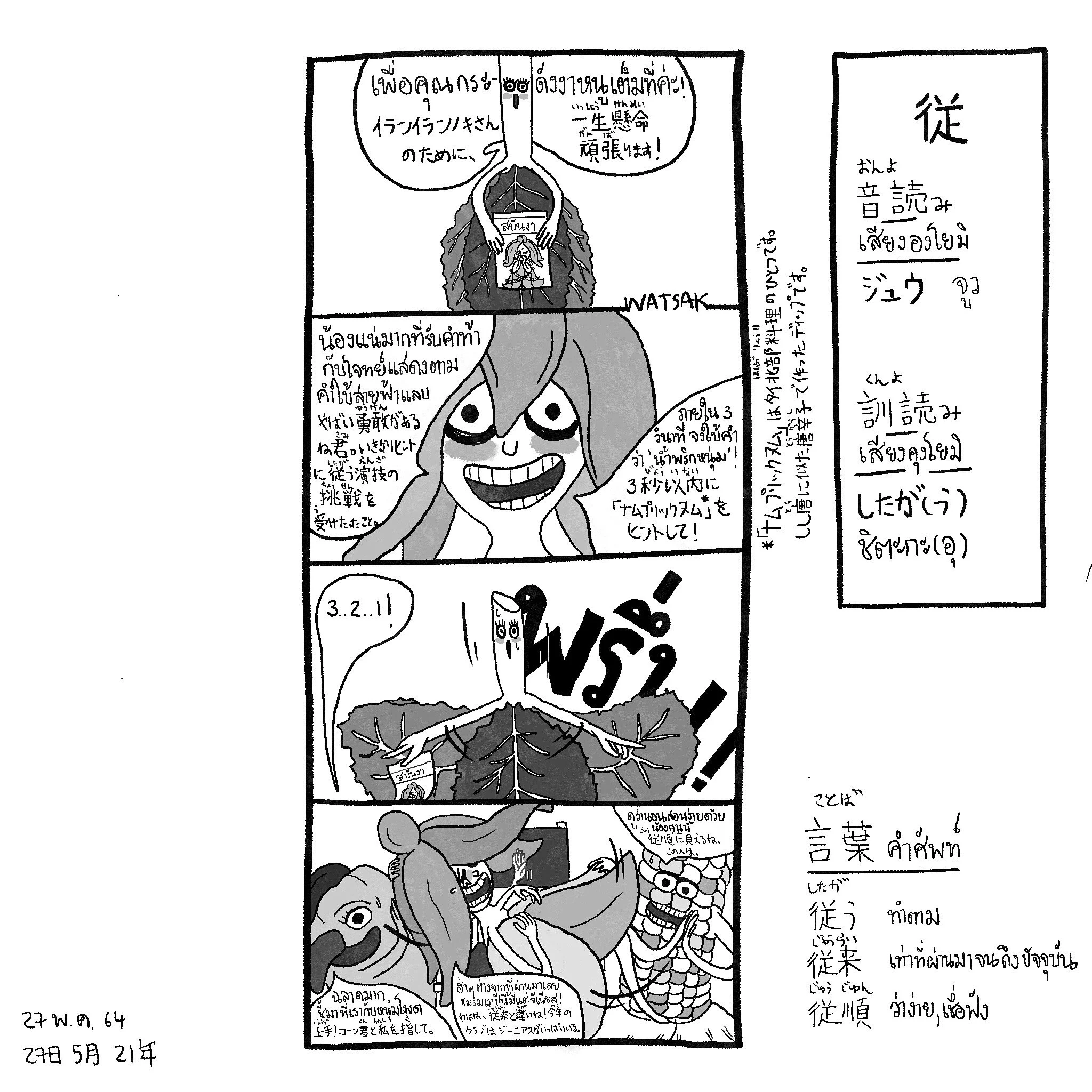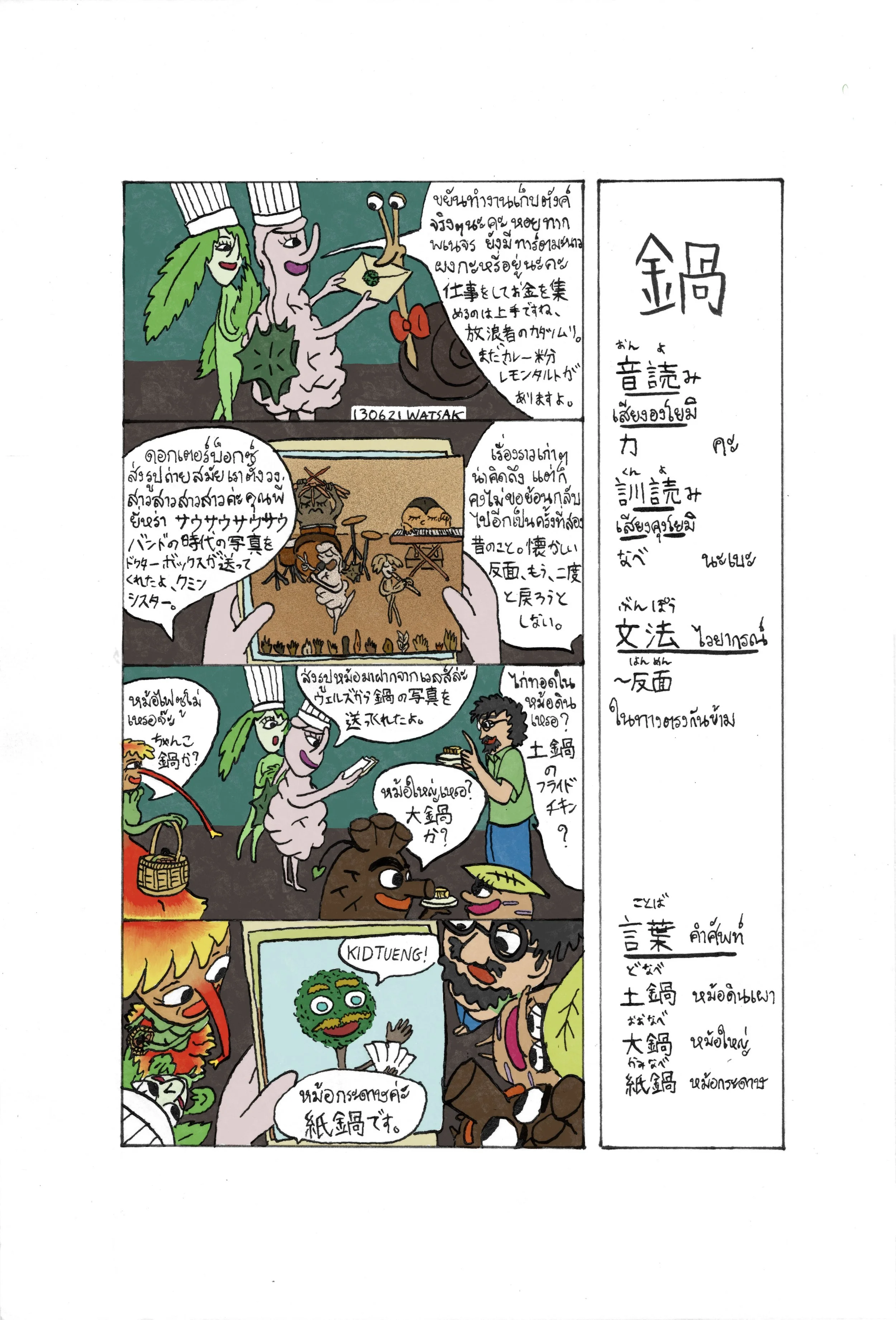 Chapter 26 Ka 鍋: At P'Tong's (a.k.a. WATSAK himself) birthday surprise party (in a secret space under his bedroom), many interactions and events happened, you may saw Strawberry from the Berry Gang showed her new dace move to Maewmaid, the half-cat-hafl-mermaid being or the wandering snail visited late after the surprise because his part-time job lately as a postman.